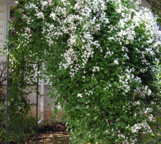 Клематис метельчатый белым облаком выигрышно и уместно подчеркнет в вашем саду вертикали, а вот надежды на плетистые розы в сибирском суровом климате, к сожалению, весьма невелики.Фото: Клематис метельчатый