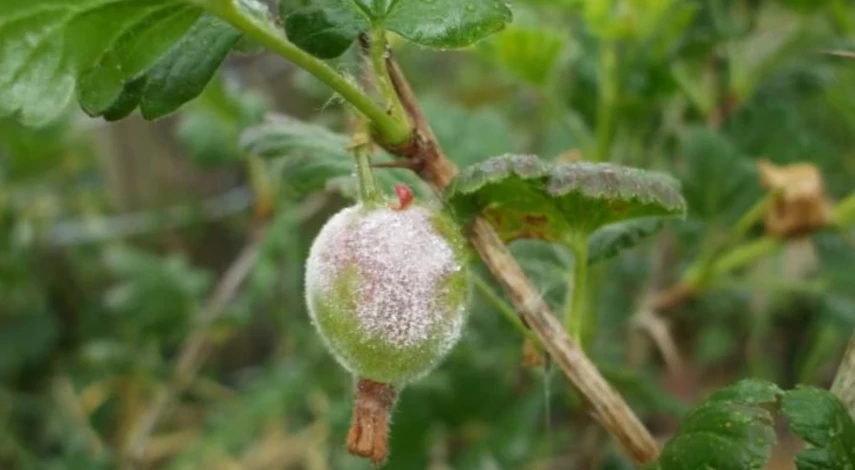 - На листьях и побегах, а затем — и на ягодах заметен белый налет, который со временем становится коричневым (созревают и разлетаются грибковые споры, заражая соседние кустарники).