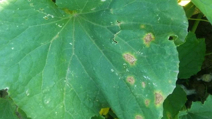 Это грибное заболевание поражает все надземные части огурца. Возбудитель сохраняется на растительных остатках в поверхностном слое почвы, семенах, конструкциях теплиц. Распространяется человеком при проведении поливов и других работ по уходу за растениями, ветром, насекомыми, дождем. В течение лета споры гриба переносятся с больных растений на здоровые. Заболевание на листьях появляется обычно во второй половине июля, а в августе поражение отмечается на плодах.