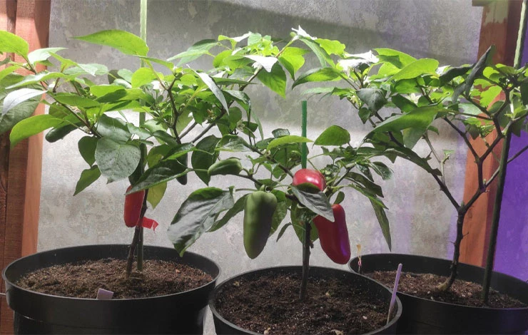 Интересно, что перцы завязывались на восточном окне даже под обычными светодиодными лампочками из люстры. Однако зимой для полного созревания им не хватало ни света, ни питания.