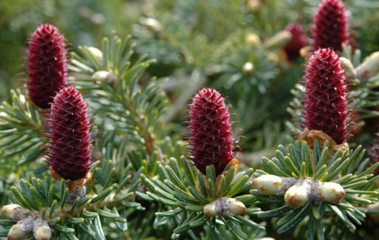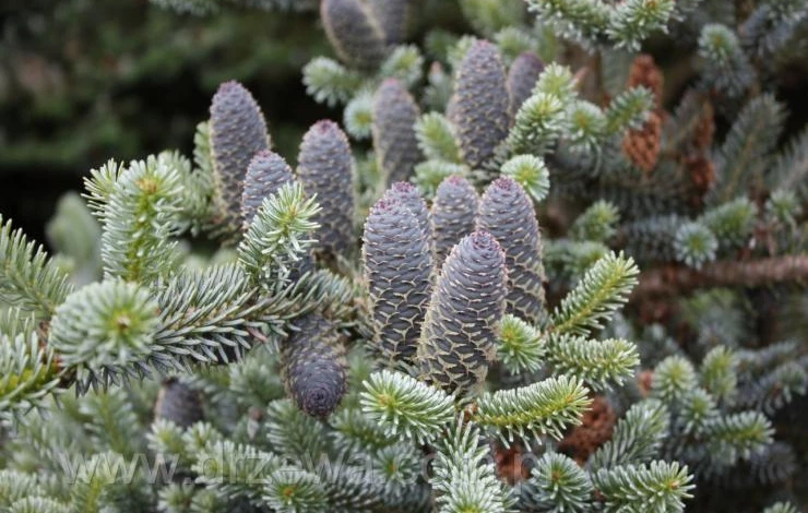 Сорт пихты корейской Блю Мэджик с самого раннего возраста усыпан шишками эллиптической формы. Точащие вертикально вверх шишки до созревания имеют сине-фиолетовую и пурпурно-фиолетовую окраску, но потом становятся бурыми с легким фиолетовым оттенком.