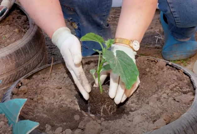 Как посадить огурцы в покрышке