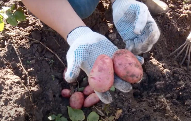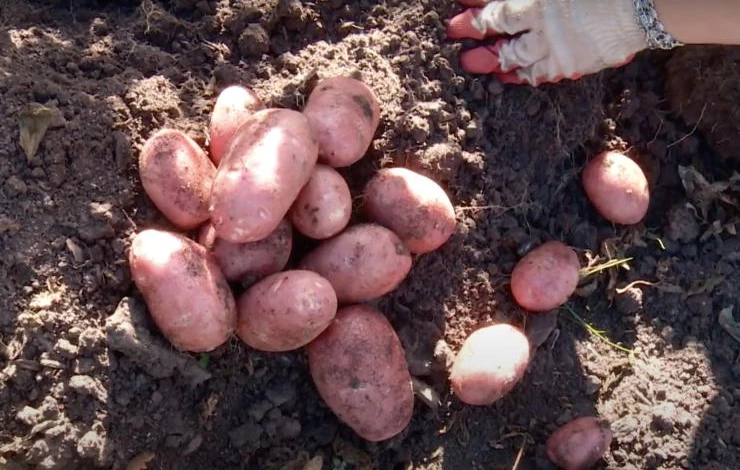 - Картофель Ред Скарлет. Сорт любят за урожайность и вкусовые качества. Клубни практически не поражаются заболеваниями (в том числе, фитофторозом), посколько быстро вырастают, причем практически без полива. Зачастую клубни расползаются далеко от лунки.