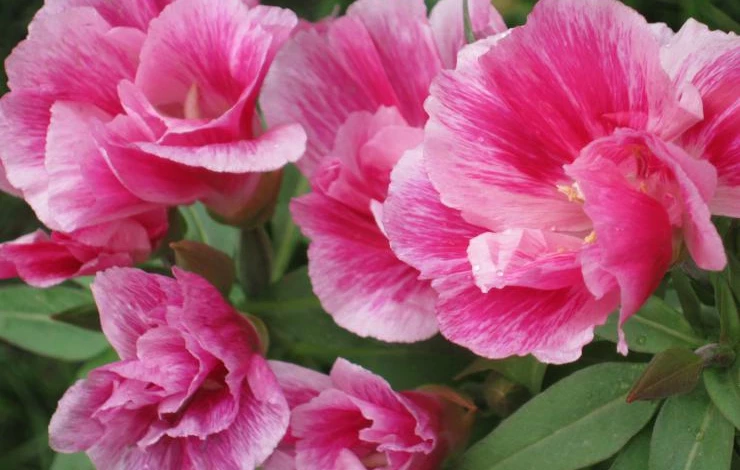 Цветки могут быть простыми и махровыми, они похожи на розочки или цветки азалии. Окраска лепестков очень разнообразна: они бывают нежно-розовыми, розово-лососевыми, карминно-красными, чистыми или в сочетании с белым.