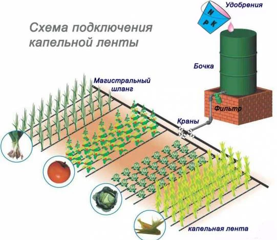 Ленты представляют собой шланг из тонкой пленки, по всей длине которого расположены компенсированные капельницы – микроскопические отверстия, через которые вода поступает равномерно и «целевым образом», – точно в прикорневую зону растений. Сразу же возникает вопрос: откуда берется вода и сколько ее потребуется?