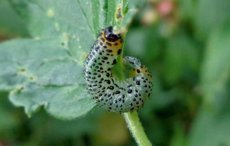 Желтый крыжовниковый пилильщик. Гусеницы минируют и скелетируют листья. Уничтожать личинок нужно сразу при обнаружении любыми биопрепаратами.