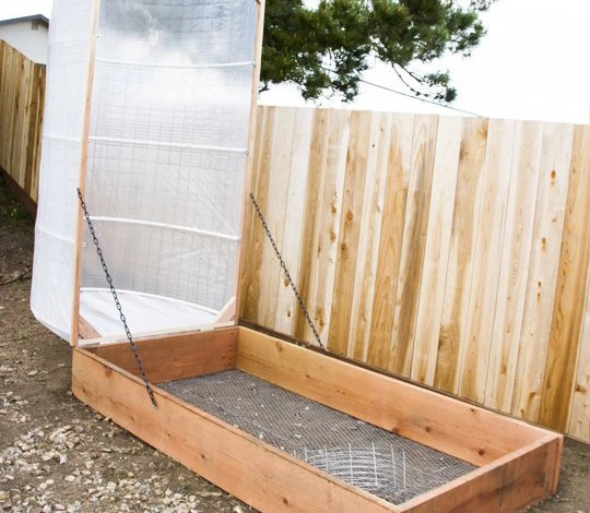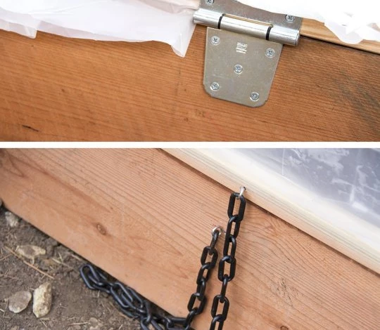 Финальный шаг: удобным для вас способом закрепите отрезки цепей, чтобы крышка парника свободно откидывалась.