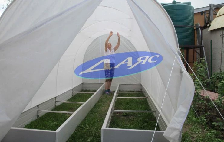 Мегапарник Даяс – это полностью готовый, увеличенный в размерах парник, в который можно входить внутрь. Его каркас сделан из полимерных труб переменной жесткости, а покрытие–чехол из износостойкого и эффективного укрывного материала Райфенхаузер. По своим внутренним размерам он приближается к теплицам на металлокаркасе, но при этом во много раз дешевле, удобнее и не менее эффективен. Его упаковка легкая и компактная, спроектирована для удобства перевозки, хранения и продажи. Он прост в установке и обслуживании.