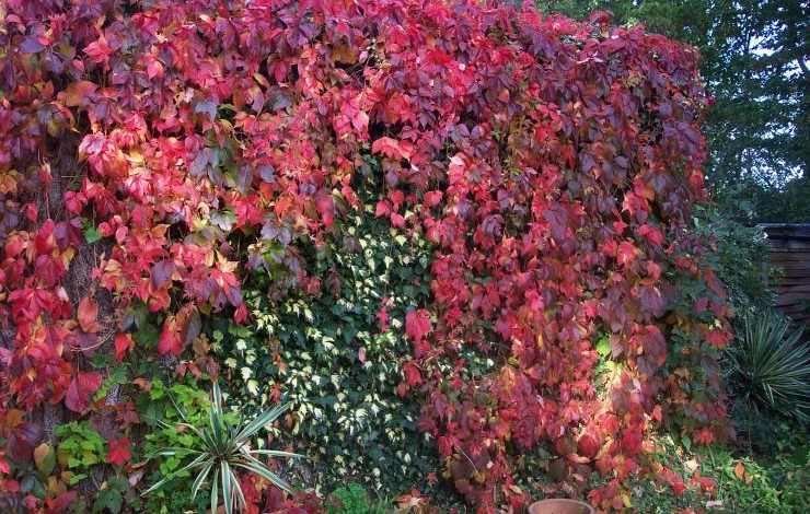 Эта лиана отлично цепляется за стены, любые ограждения и деревья, поэтому ее широко используют для вертикального озеленения, она очень живописно оплетает своими листьями поверхности. К осени зеленые листья постепенно краснеют, что выглядит необычайно красиво.