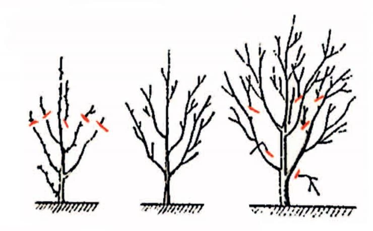 Укорачивание ветвей не проводят, т. к. почти все сорта плодоносят на приростах прошлого года. При удалении ростовой верхушечной почки часто усыхает вся ветка.