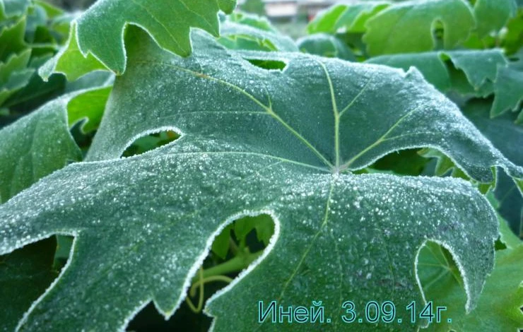 Так в 2014 году последний заморозок был 9 июня, а первый убивающий листву, 3 сентября. 4сентября заморозок -3 градуса, а 5 на почве до -5 градусов. Подмёрзли зрелые ягоды, чего раньше никогда не бывало. Безморозный период составил всего 84 дня. Небольшой иней на древесине 28 и 29 августа листву не повредил.