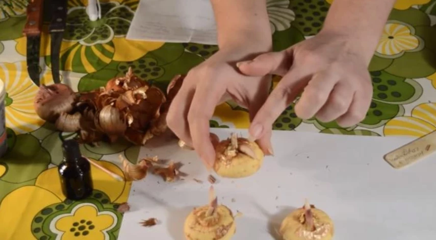 Очищенные от чешуек луковицы прорастут на пять дней быстрее.