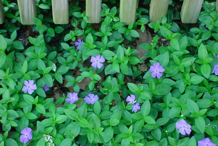Барвинок малый в наших садах встречается пока еще нечасто. А растение замечательное! Это вечнозеленый стелющийся почвокровный многолетник с ветвистым стеблем и голубыми цветками диаметром до 2,5 см. цветет в мае-июне около месяца, но и после цветения остается декоративным благодаря темно-зеленым кожистыми листьями. Стелющиеся побеги укореняются в местах соприкосновения с почвой. Зимостоек, но молодые посадки требуют укрытия небольшим слоем листвы.
