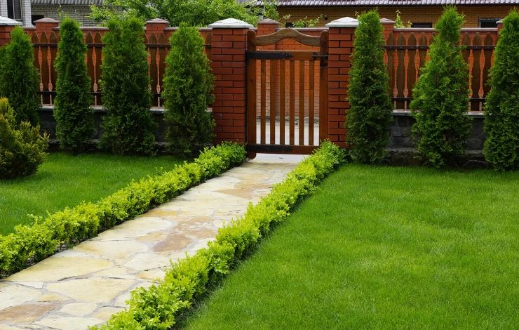 - Оформляем красивую границу у газона. Выкладываем плиткой или обкапываем. Граница нужна, чтобы трава не расползалась во все стороны и смотрелась аккуратно в заданной геометрической форме.