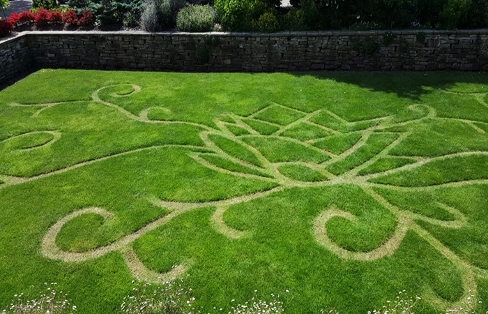 Вовремя проводим первую стрижку. Как только трава поднимется выше 8–10 сантиметров – стрижем. Не запускайте газон. С ним можно смело экспериментировать, выстригать каких-то зверей или фигурки, не боясь его испортить. Травосмесь из нескольких видов довольно неприхотлива и устойчива к экспериментам. Сейчас это модно и актуально в ландшафтном дизайне. Можно выстригать полосками или по спирали.