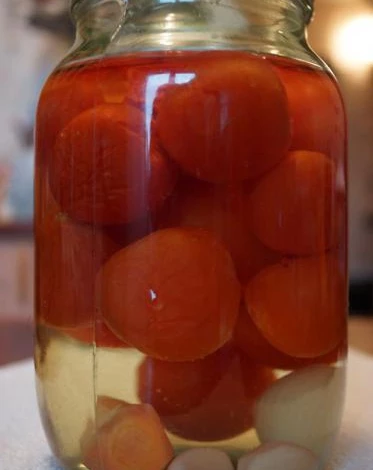 Кстати, если добавить острый перец, получается тоже очень здорово. Я добавила 1/8 перчинок очень острого перца в некоторые баночки (1л). Получилось довольно остро, хорошо, что целый не положила.