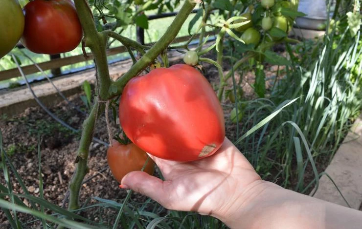 Американский ребристый – сорт из тех, что сильно рекомендую, его высота около двух метров, плоды весят почти все по пол кило, красные и похожи на бутон розы, когда он раскрыт полностью.