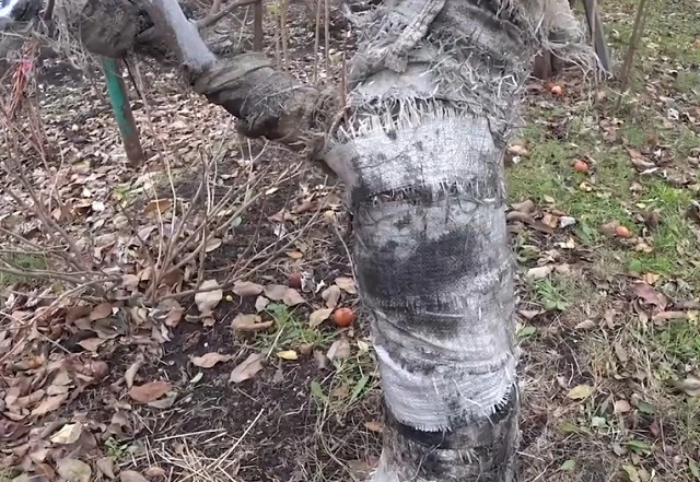 В качестве средства защиты от мышей для штамбовых яблонь используют мешковину. При этом для стелющихся деревьев с большим количеством плотно расположенных веток такой способ не подойдет.