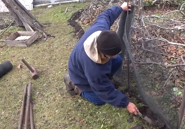 Фото: снизу сетку прикапывают на несколько сантиметров, фиксируя ее в земле.