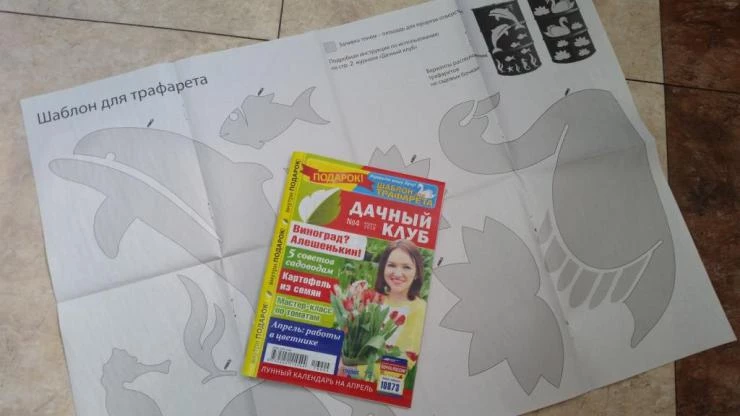 Т.е в понимании ребенка - должны быть отличия между старым и новым. И вот что мы будем делать на даче в ближайшие выходные! Мы будем красить белое - яркими красками! Возьмем трафарет из апрельского "Дачного клуба" (он внутри журнала, приятный подарок).