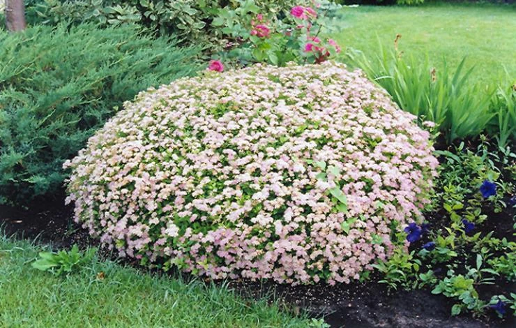 Низкорослые кустарники для оформления береговой линии водоемов или ручьев: спирея японская, барбарис и можжевельник.