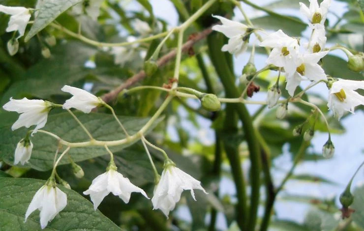 Первые появившиеся уже в июне цветки по внешнему виду напоминали картофельные. Они были собраны в кисти по 50—70 штук. Количество подобных кистей на растении трудно подсчитать.