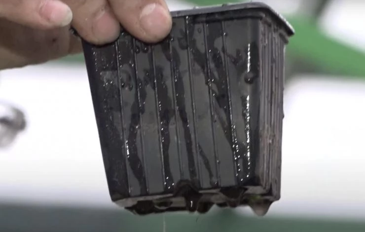 Глядя на миниатюрную уплощенную упаковку, трудно поверить, что она содержит 10 литров земли. Техника сильно спрессовывает субстрат, выводя воздух через специальные отверстия на пакете, чтобы они смотрелись красиво, занимали меньше места в магазине. Так нести их намного удобнее.