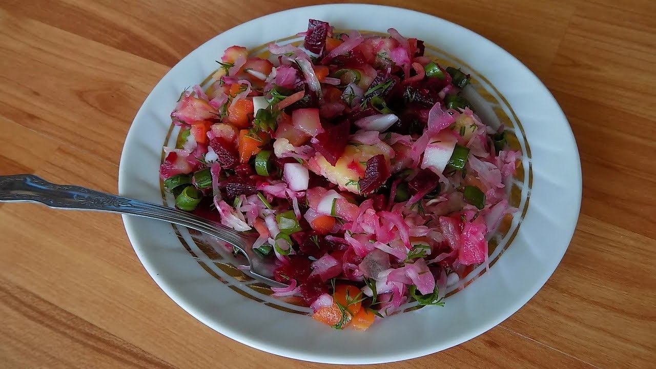 Классический винегрет с квашеной капустой. Простой видео рецепт