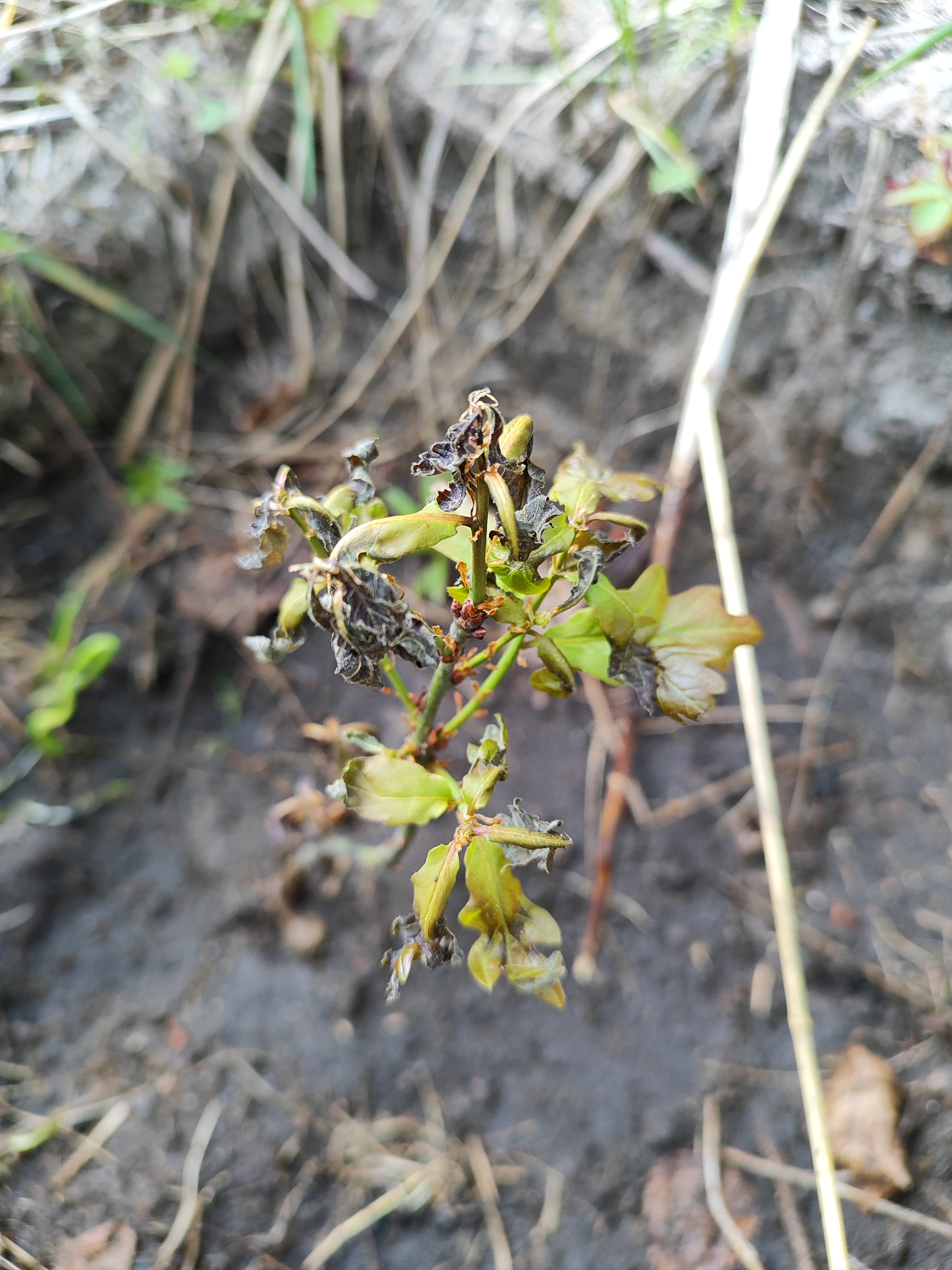 Здравствуйте! В 2023 году посадила дома в стаканчики жёлуди. За год выросли молодые дубки. В 2024 году высадили на даче каждое деревце в свою лунку. Удобрили. На зиму утеплили. В мае раскрыли и вот сегодня приехали посмотреть, часть дубов с молодыми здоровыми листочками (как на втором фото), а часть - с пожухлыми (как на первом фото). Живём на крайнем Севере. Жёлуди привезли из Москвы. Это от солнца? Или болезнь какая-то? Спасибо за внимание!!!