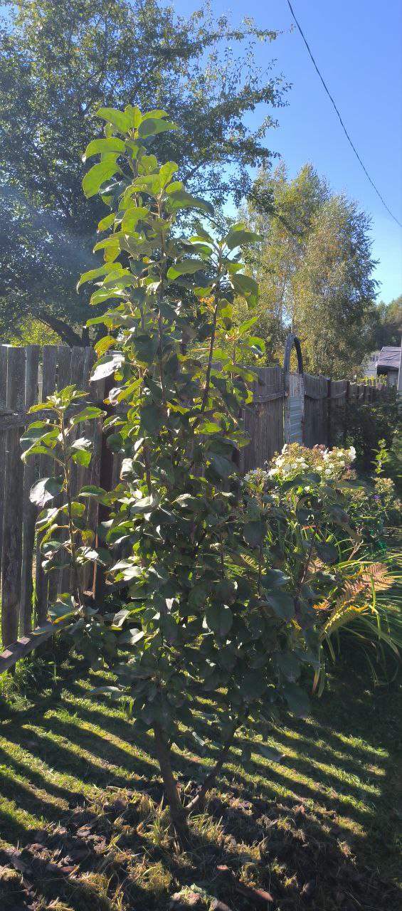 Здравствуйте! Купили дачу в прошлом году, на ней была уже посажена эта яблоня, то есть она перезимовала в грунте первый год (то есть следующая зима будет третья). Пока никак ее не обрезали, не плодоносила. высота сейчас около 170 см. Предыдущая хозяйка сорт не помнит. Вопрос - колоновидная ли она или простая? Сначала я думала простая, сейчас, глядя на нее, начинаются сомнения. Хочу следующей весной сделать обрезку, и пока не знаю как (в зависимости от колоновидности).
