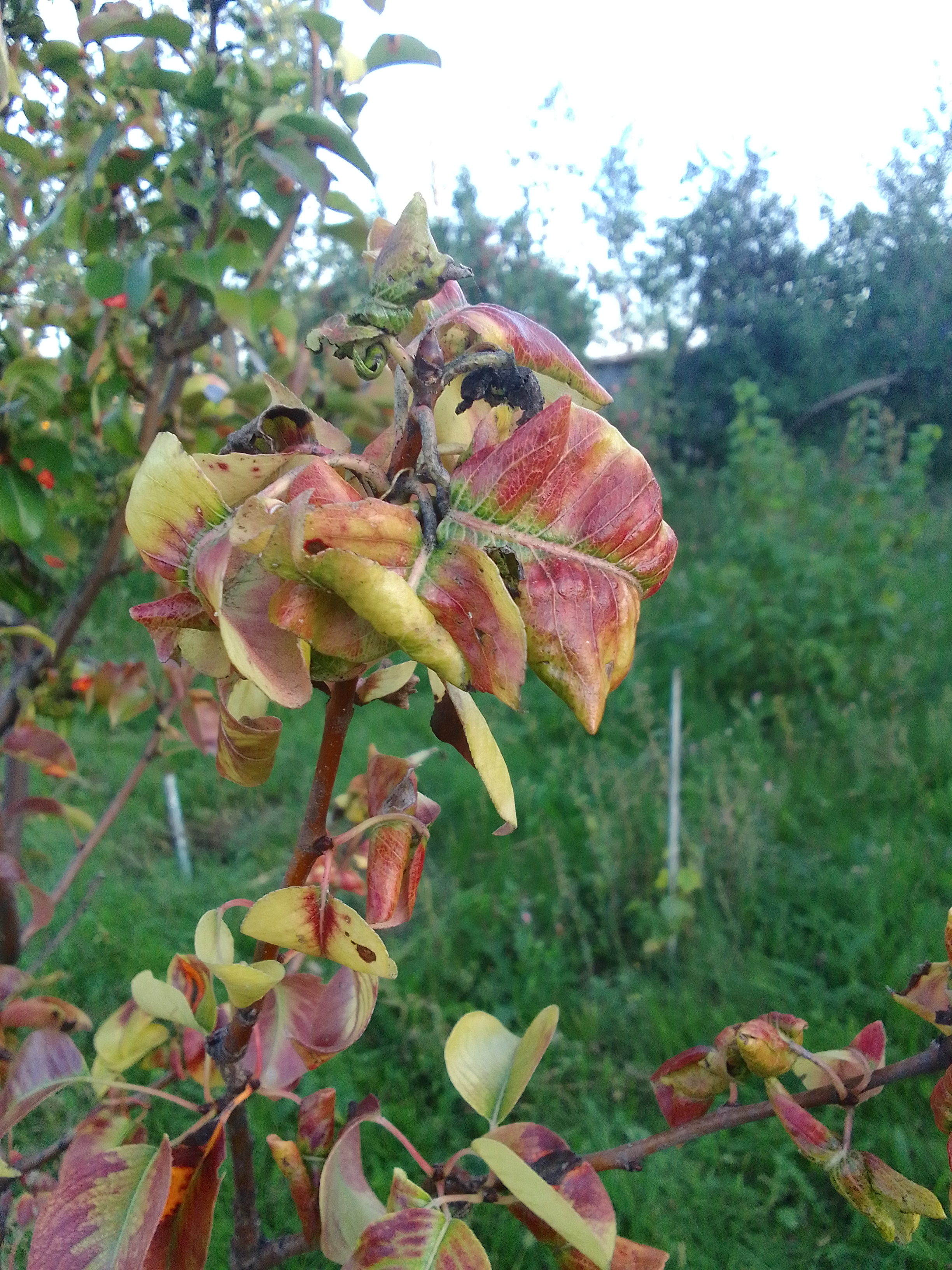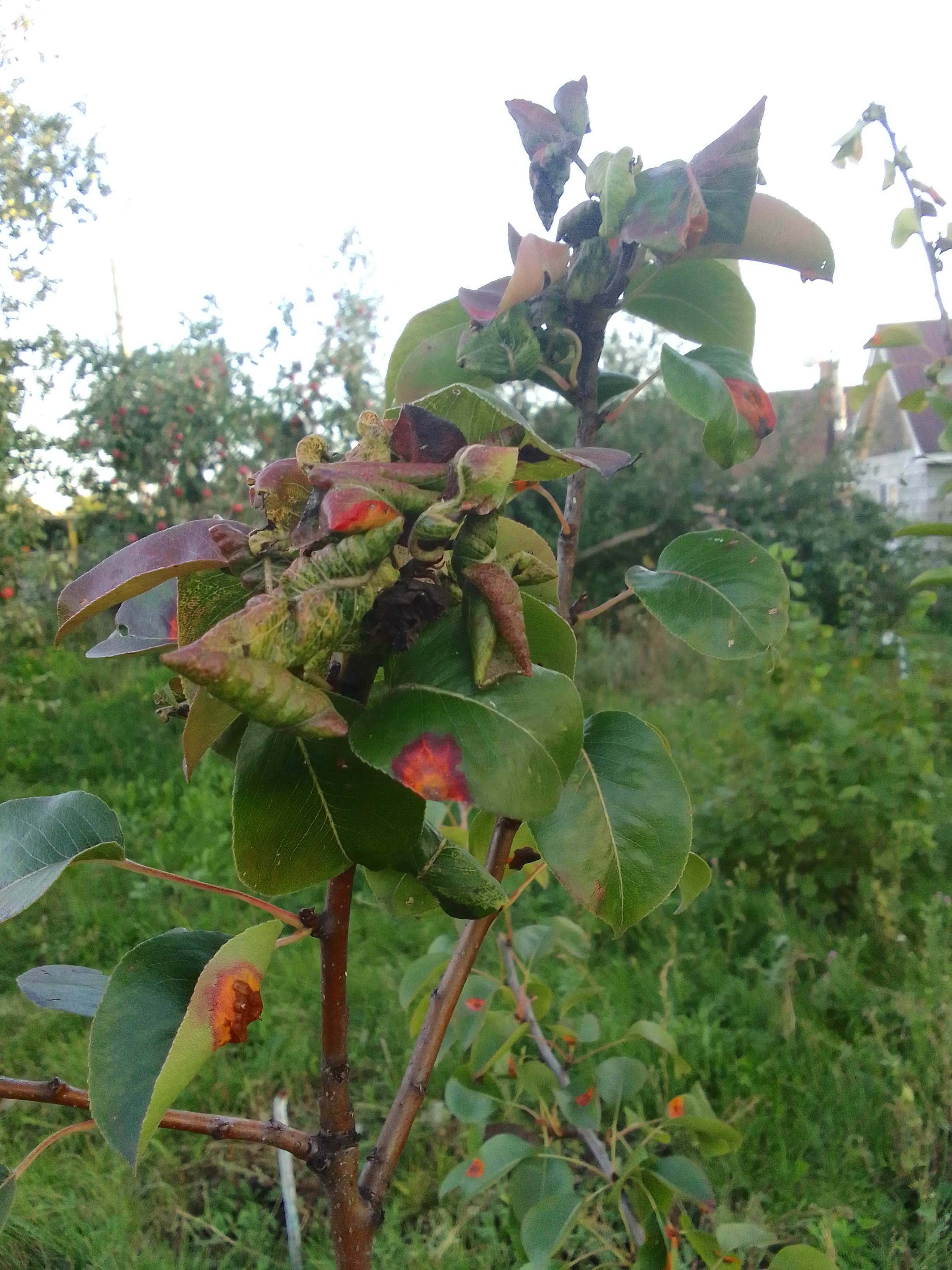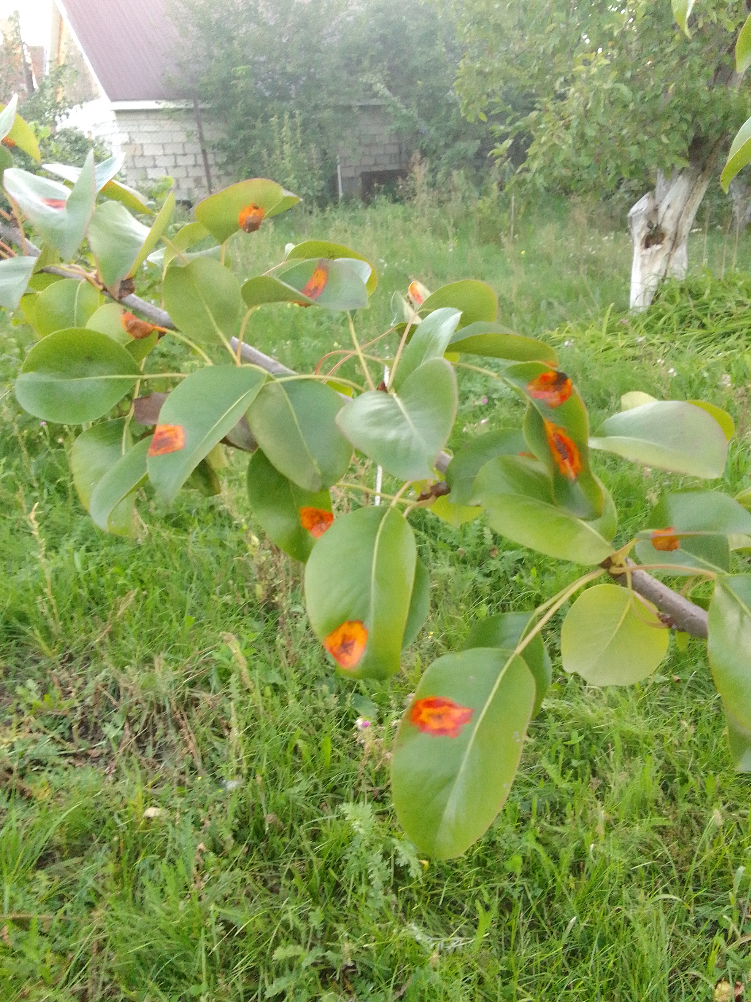 Здравствуйте! Это ржавчина груши — распространенное грибковое заболевание. Источником заразы часто является растущий поблизости можжевельник. Без лечения дерево будет слабеть. Вам нужно обработать грушу медьсодержащим фунгицидом, например, препаратом «Абига-Пик» или «ХОМ», строго по инструкции. Обязательно соберите и сожгите все пораженные листья, чтобы грибок не перезимовал. Обработку, скорее всего, придется повторить следующей весной.