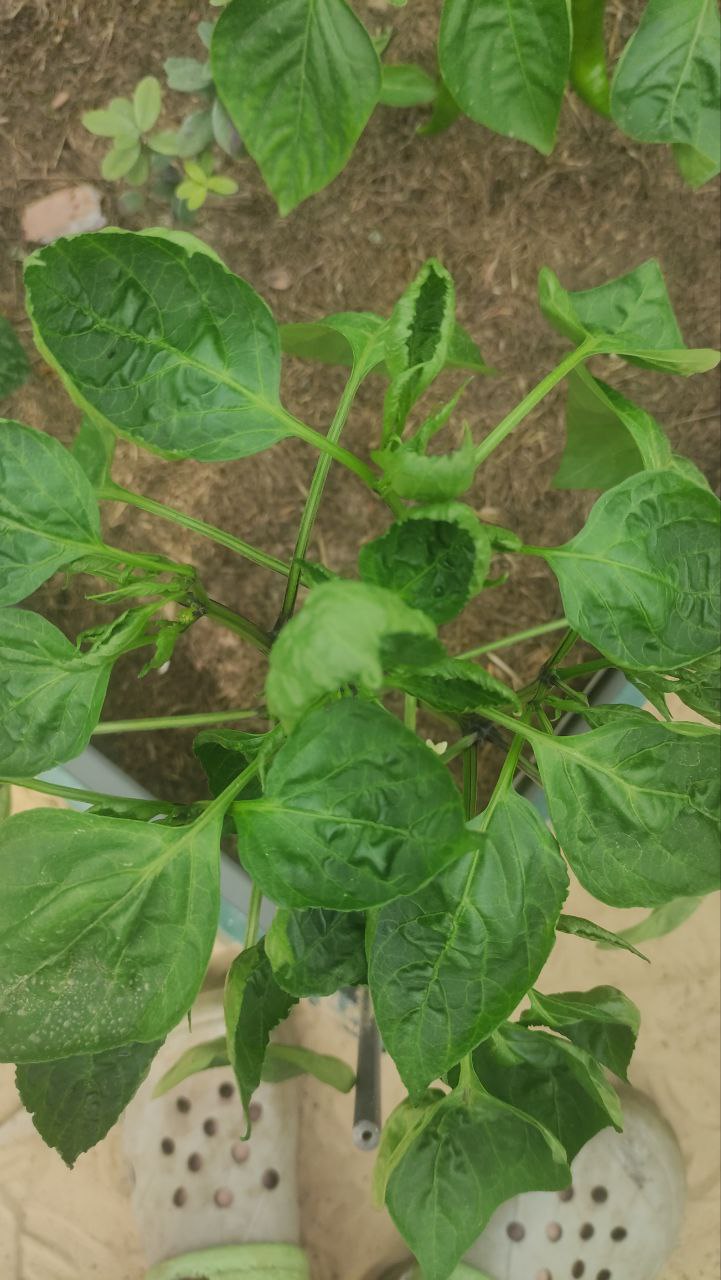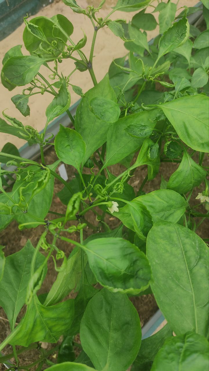 Добрый день, уважаемые эксперты! Не могу понять, что за напасть на сладком перце. Перец растет в теплице, с уличным проблем нет. Вроде бы никаких тварей на листве не видно. Поливаем 2 раза в неделю, много. Рост кустов из-за этого остановился. Что это может быть? Как устранить? Заранее спасибо за ответ!