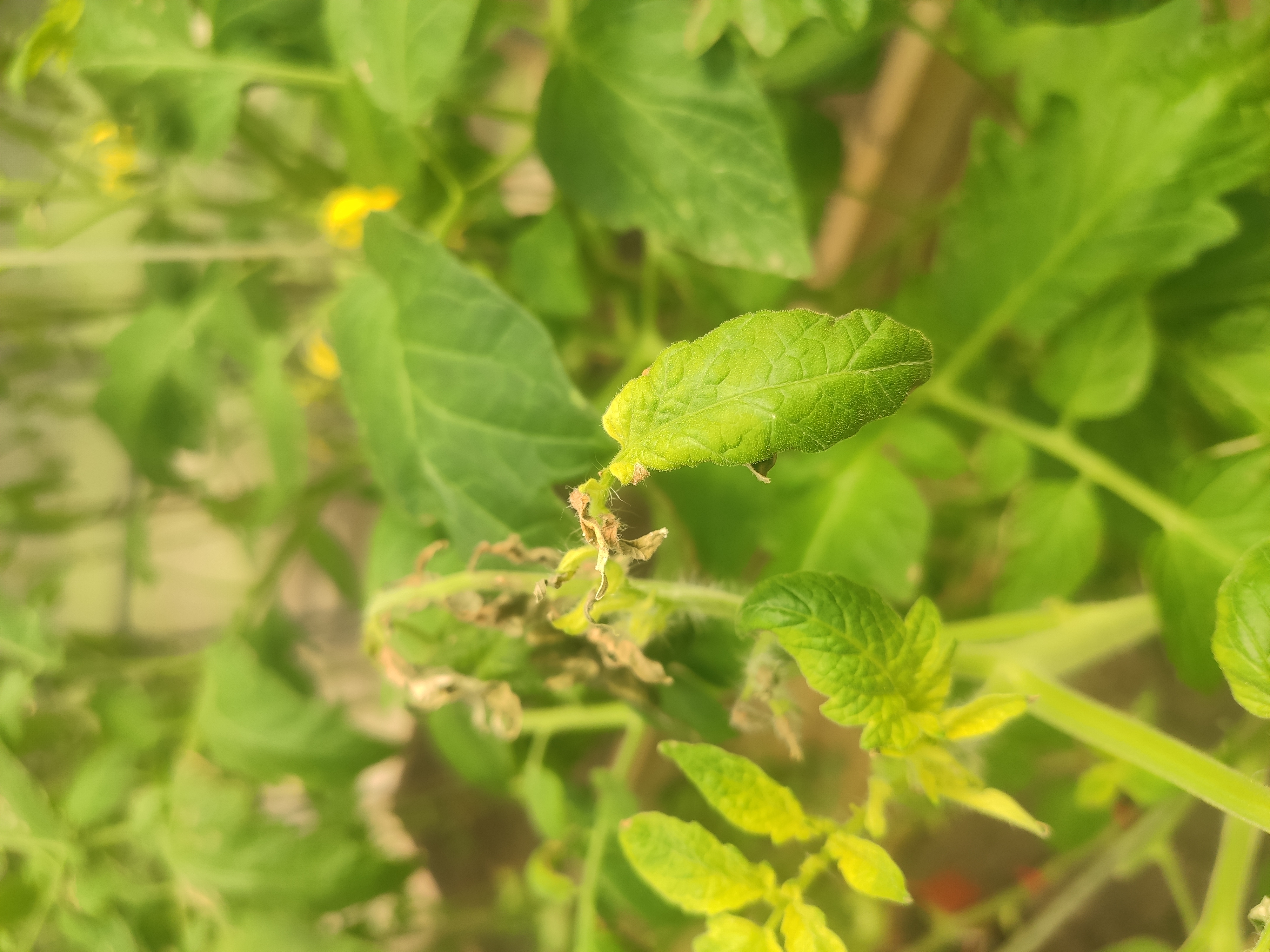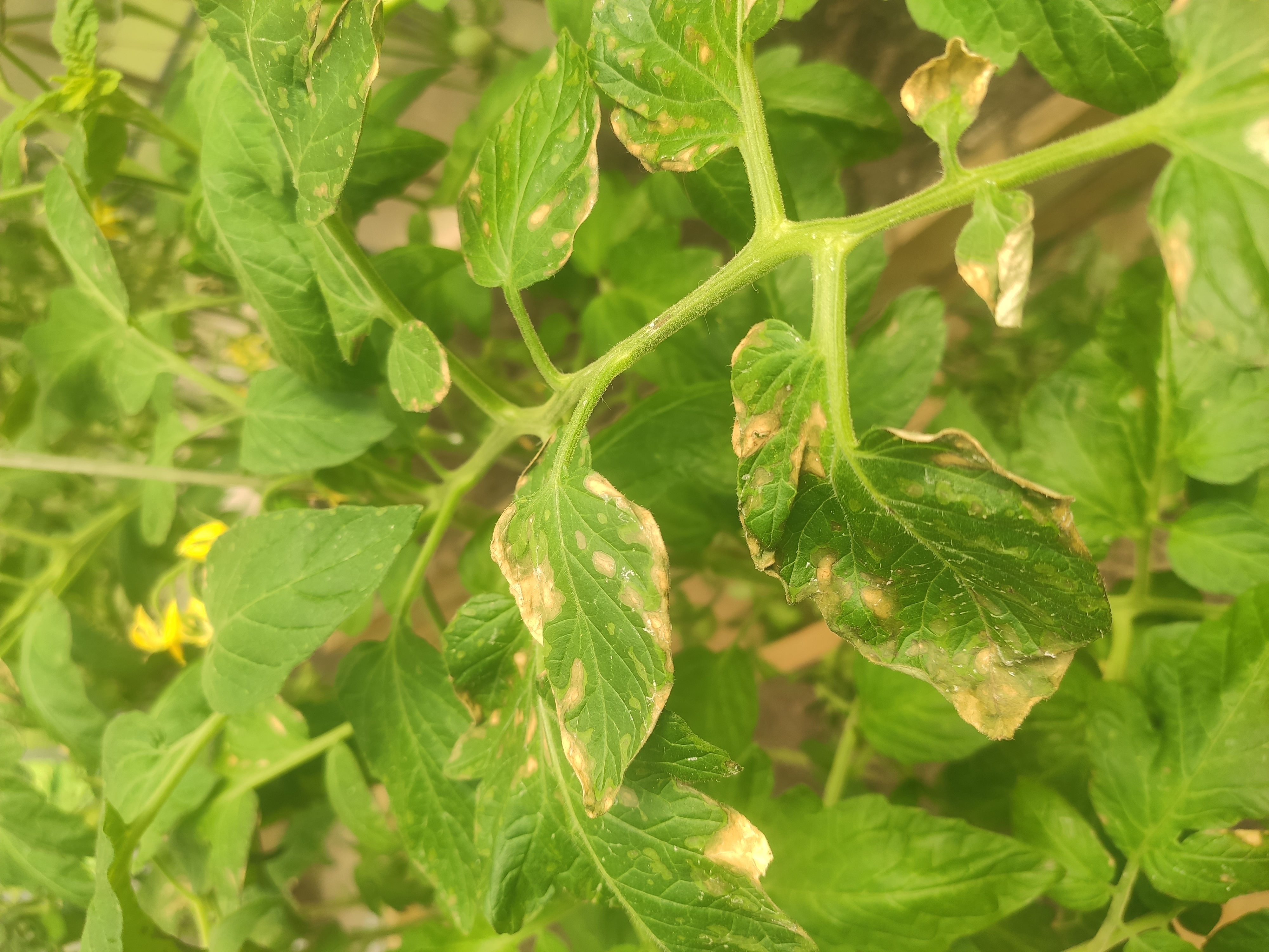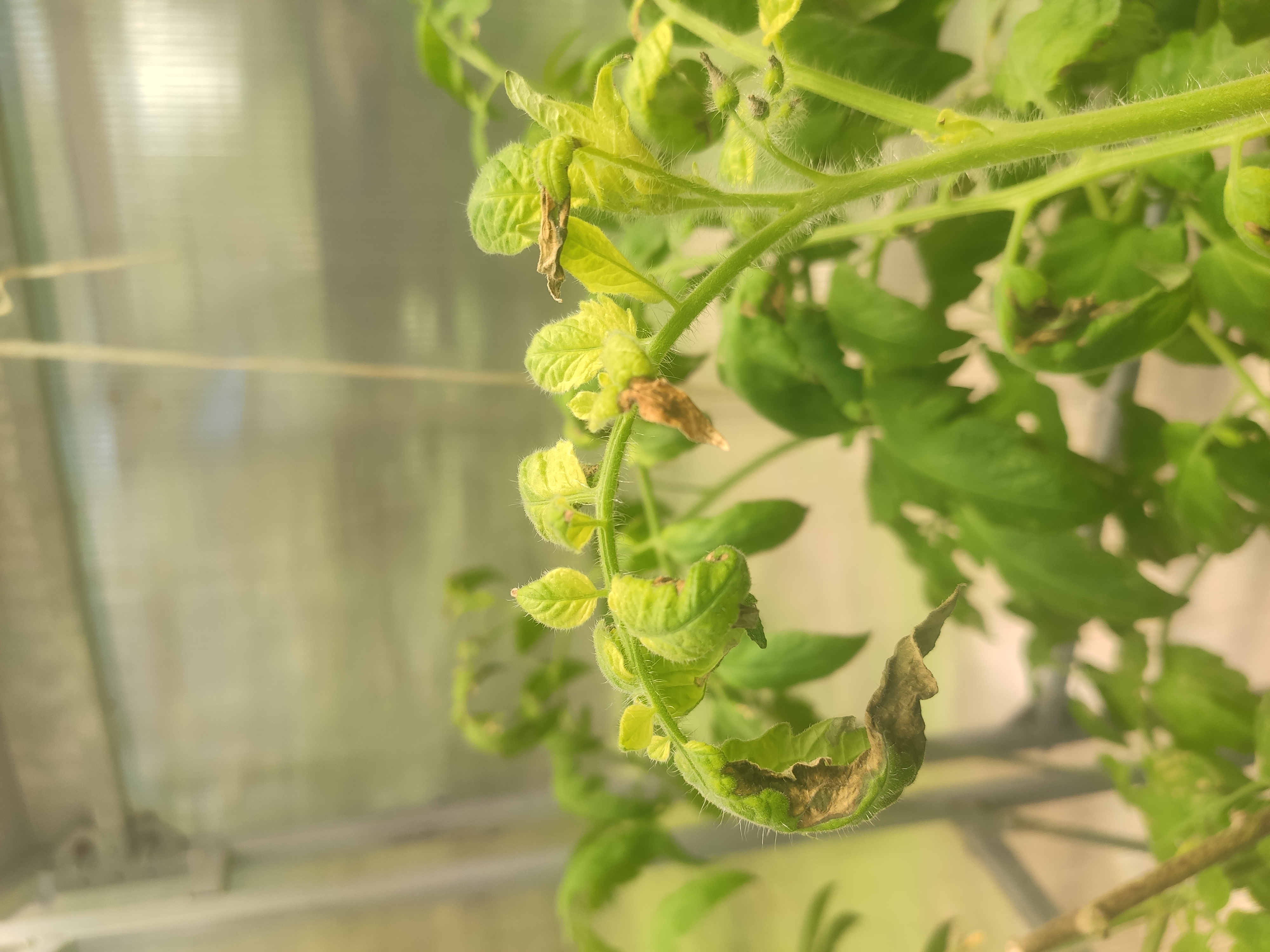 Здравствуйте! Сегодня заметила вот такую картину в теплице. Многие листья стали такие. Два дня назад опрыскала борной и янтарной кислотой. Но может переборщила с дозировкой? (10 г на 10 литров). Но листья не все такие,а опрыскивала очень тщательно. Или это какое то заболевание? Все пасынки и верхушки стали светлого цвета,некоторые бутоны засохли. Но на стеблях и плодах ничего нет. Как спасти помидоры? Спасибо!